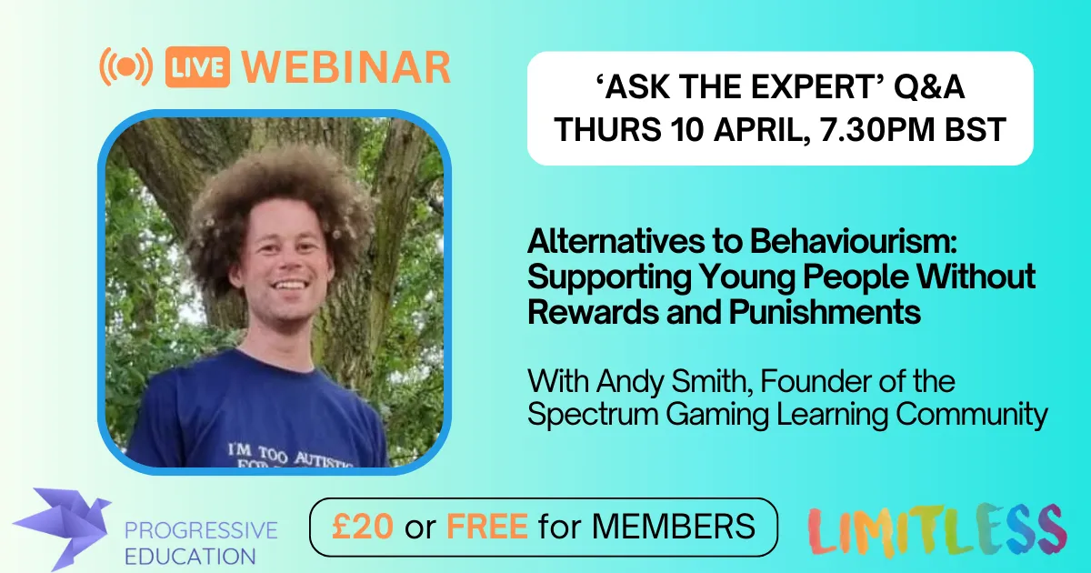 This webinar series is brought to you by Jo Symes at Progressive Education and Alex O’Neill from Limitless. We are education activists who have a shared passion for raising awareness of alternatives to mainstream school.