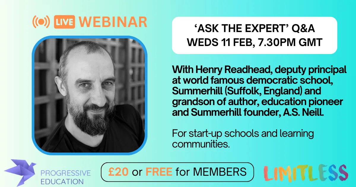 Come and meet Henry Readhead, who is deputy principal at world famous democratic school, Summerhill (Suffolk, England) and one of the grandsons of author, education pioneer and Summerhill founder, A.S. Neill.